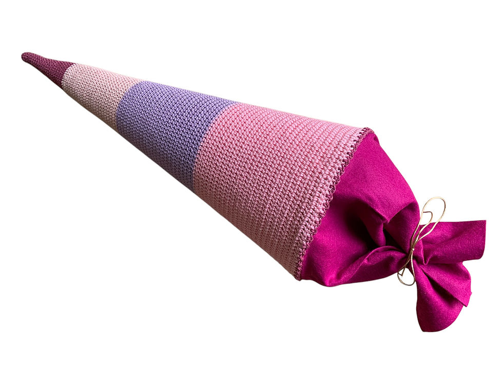 Einzigartige, handgefertigte Schultüten aus hochwertigem Garn - individuell, nachhaltig und mit viel Liebe gehäkelt.